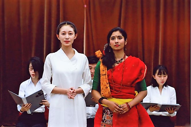 《红夹竹桃》中印女演员联合演出